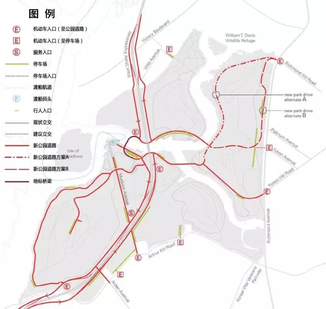 (5)在生態(tài)敏感度允許條件下優(yōu)化交通網絡,提升公園在紐約市域及區(qū)域范圍內的可達性;