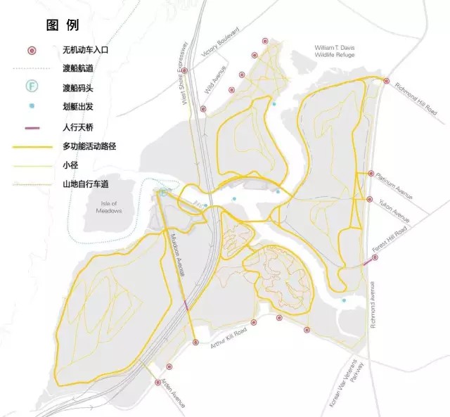 機動交通規(guī)劃旨在提升公園的連接度、可達性與通行能力,并提出了五項基本原則。