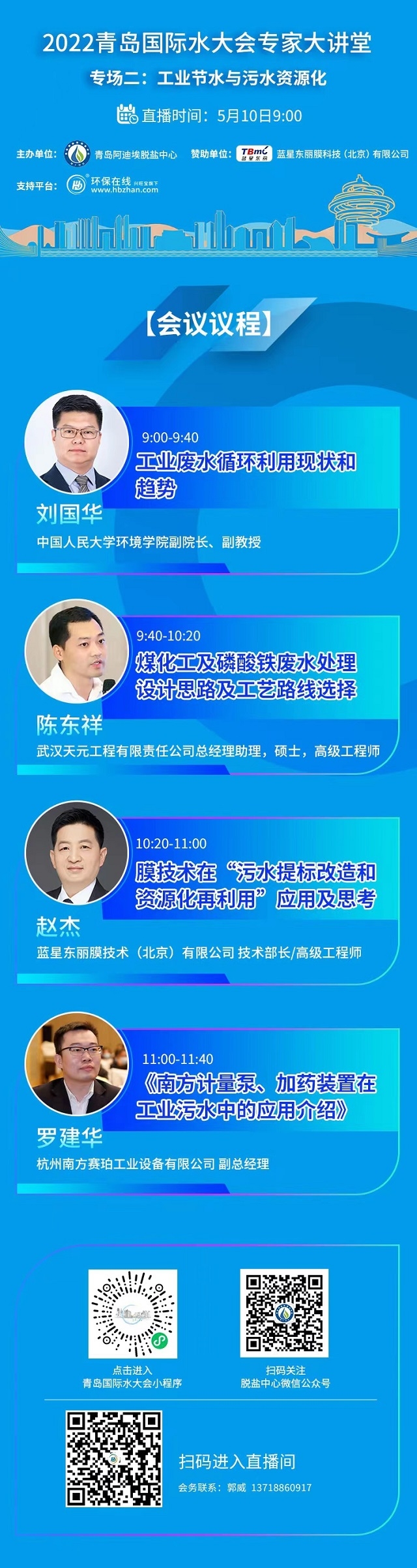 聚焦【工業(yè)節(jié)水與污水資源化】議題,由環(huán)保在線攜手青島阿迪埃脫鹽中心舉辦的“2022青島國際水大會專家大講堂”線上活動,將于5月10日上午9:00翻開第二篇章。屆時,各領域專家、學者及特邀嘉賓將齊聚一堂,以“演講+實時互動”的形式,圍繞工業(yè)水處理熱點展開討論,為行業(yè)前行之路點亮一盞明燈。