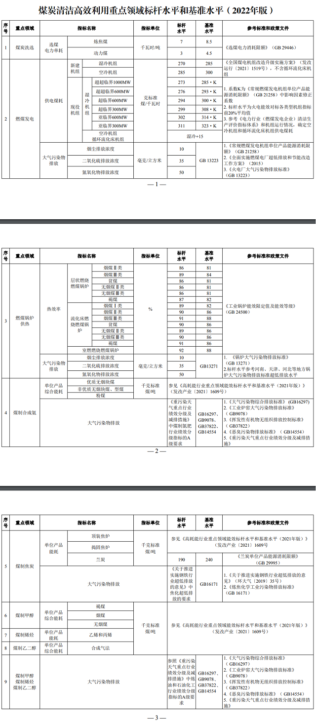 國家發(fā)展改革委等部門關(guān)于發(fā)布《煤炭清潔高效利用重點領(lǐng)域標桿水平和基準水平(2022年版)》的通知