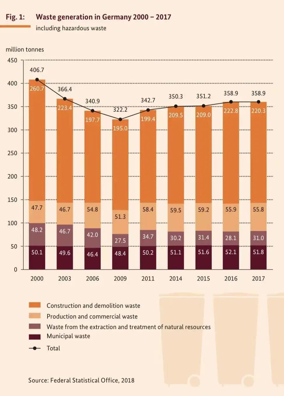 2000年到2017年德國(guó)垃圾產(chǎn)生量: