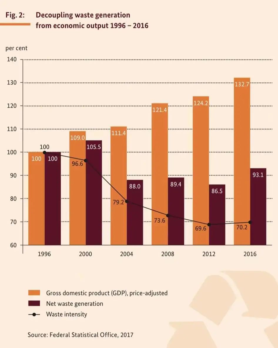 2020年3月,德國(guó)聯(lián)邦環(huán)境、自然保護(hù)、核安全與消費(fèi)者保護(hù)部 (Federal Ministry for the Environment, Nature Conservation and Nuclear Safety) 發(fā)布《德國(guó)固廢管理2020》(Waste Management in Germany 2020),旨在展示政府、企業(yè)及公民可以共同達(dá)到的目標(biāo),并為希望以生態(tài)無(wú)害方式實(shí)現(xiàn)資源閉環(huán)的國(guó)家提供最佳實(shí)踐范例。循環(huán)經(jīng)濟(jì)涵蓋了資源管理的所有階段,從資源開采、產(chǎn)品設(shè)計(jì)和制造到銷售、消費(fèi)以及通過(guò)再利用和回收實(shí)現(xiàn)循環(huán)的結(jié)束,同時(shí)也是一項(xiàng)全球性的任務(wù)。