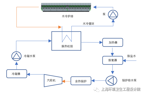 水冷爐排系統(tǒng)熱量也可以進(jìn)入鍋爐循環(huán)水系統(tǒng)用于驅(qū)動汽輪機(jī)組詳見附圖7,從而實(shí)現(xiàn)熱量循環(huán)利用??傮w而言,水冷系統(tǒng)能夠帶走熱負(fù)荷2-3%,降低系統(tǒng)熱損失,增加焚燒廠發(fā)電量。