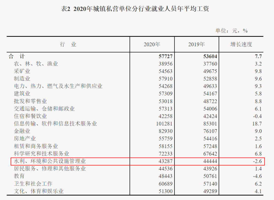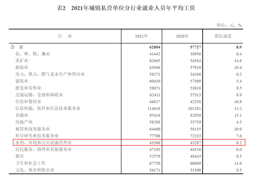最近兩年,每到4-5月份,環(huán)保行業(yè)日子似乎都不好過(guò)。4月前后,年報(bào)發(fā)布季,一大波環(huán)保企業(yè)出現(xiàn)虧損,不好過(guò)。5月下旬,國(guó)家統(tǒng)計(jì)局照例又要發(fā)布上一年度的平均工資數(shù)據(jù),環(huán)保行業(yè)經(jīng)常排名墊底,又不好過(guò)。這不,5月20日,國(guó)家統(tǒng)計(jì)局就公布了2021年度的平均工資數(shù)據(jù),環(huán)保行業(yè)首次實(shí)現(xiàn)了收入增速的“雙墊底”(私營(yíng)單位+非私營(yíng)單位),增速還不如飽受疫情和政策影響的教育、餐飲和房地產(chǎn)業(yè),實(shí)在令人汗顏。而回顧過(guò)去5年,城鎮(zhèn)私營(yíng)單位環(huán)保行業(yè)的收入增速就一直排名倒數(shù)。2017年倒數(shù)第一,2018年倒數(shù)第一,2019年和2020年倒數(shù)第二,2021年再次倒數(shù)第一,三次“第一”兩次“第二”(全是倒數(shù)),可謂“收入增速增長(zhǎng)最緩慢行業(yè)”。為什么出現(xiàn)這一狀況?與環(huán)保行業(yè)的基本屬性有關(guān)。作為一個(gè)關(guān)系國(guó)計(jì)民生的重要行業(yè),環(huán)保行業(yè)注定不可能暴利,其業(yè)績(jī)的一大特點(diǎn)就是經(jīng)常“增收不增利”,從業(yè)人員的收入自然也就比較低了。5月20日,國(guó)家統(tǒng)計(jì)局公布了2021年城鎮(zhèn)單位就業(yè)人員的平均工資數(shù)據(jù)。這項(xiàng)數(shù)據(jù)主要分為3個(gè)榜單——城鎮(zhèn)非私營(yíng)單位就業(yè)人員年平均工資、城鎮(zhèn)私營(yíng)單位就業(yè)人員年平均工資,以及規(guī)模以上企業(yè)就業(yè)人員年平均工資。我們主要看的是前兩個(gè)榜單,非私營(yíng)單位和私營(yíng)單位的。榜單根據(jù)《國(guó)民經(jīng)濟(jì)行業(yè)分類(lèi)》(GB/T4754-2017)對(duì)各行業(yè)進(jìn)行了分類(lèi),環(huán)保行業(yè)屬于其中的“水利、環(huán)境和公共設(shè)施管理業(yè)”。今年的數(shù)據(jù),環(huán)保行業(yè)的最大特點(diǎn)是——首次實(shí)現(xiàn)了收入增速的“雙墊底”:非私營(yíng)單位收入增速,環(huán)保行業(yè)3.0%,排名倒數(shù)第一;私營(yíng)單位收入增速,環(huán)保行業(yè)0.2%,排名也是倒數(shù)第一。 0.2%的增速,可以說(shuō)幾乎就是沒(méi)有增長(zhǎng)了。而橫向?qū)Ρ绕渌袠I(yè),可以看到——都比環(huán)保行業(yè)好。都說(shuō)房地產(chǎn)業(yè)這兩年日子不好過(guò),可人家的收入增速也有4.5%;都說(shuō)教育業(yè)因?yàn)椤半p減”涼涼了,可以人家的增速還有8.5%;都說(shuō)住宿和餐飲業(yè)受疫情影響最大,可人家的增速竟然有10.8%。你說(shuō)氣人不?整天哭著喊著的行業(yè)沒(méi)啥事,這邊一直默默無(wú)聞的環(huán)保行業(yè)一算賬卻來(lái)了個(gè)墊底。為啥環(huán)保行業(yè)的收入增速這么慢?官方給出的解釋是——隨著疫情防控成效顯現(xiàn),2021年大部分行業(yè)恢復(fù)性發(fā)展,但旅游業(yè)與景區(qū)收入恢復(fù)較慢,部分地區(qū)工資水平較低的環(huán)保、護(hù)林等公益性崗位增加較多,這些都拉低了水利環(huán)境和公共設(shè)施管理業(yè)的工資增長(zhǎng)速度。
