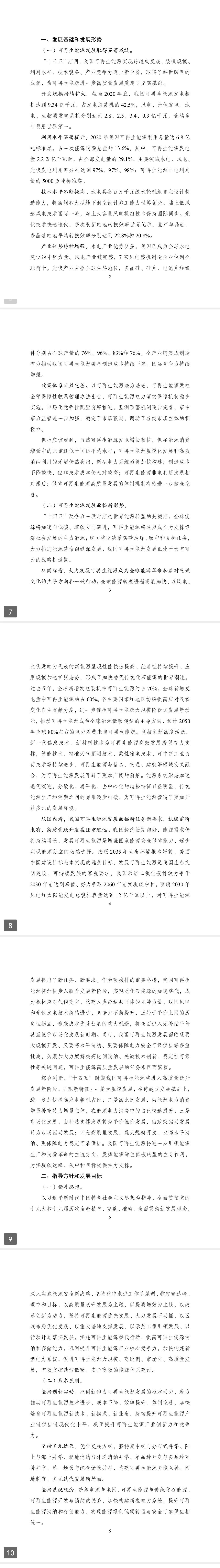 ??為深入貫徹“四個革命、一個合作”能源安全新戰(zhàn)略,落實碳達峰、碳中和目標,推動可再生能源產(chǎn)業(yè)高質(zhì)量發(fā)展,根據(jù)《中華人民共和國國民經(jīng)濟和社會發(fā)展第十四個五年規(guī)劃和2035年遠景目標綱要》和《“十四五”現(xiàn)代能源體系規(guī)劃》有關(guān)要求,我們組織編制了《“十四五”可再生能源發(fā)展規(guī)劃》?,F(xiàn)印發(fā)給你們,請遵照執(zhí)行。