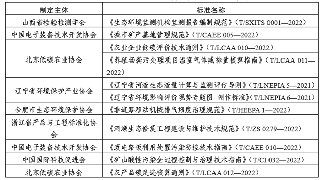 5月,全國(guó)團(tuán)體標(biāo)準(zhǔn)信息平臺(tái)公布了11項(xiàng)生態(tài)保護(hù)和環(huán)境治理類(lèi)團(tuán)體標(biāo)準(zhǔn),詳見(jiàn)表2。