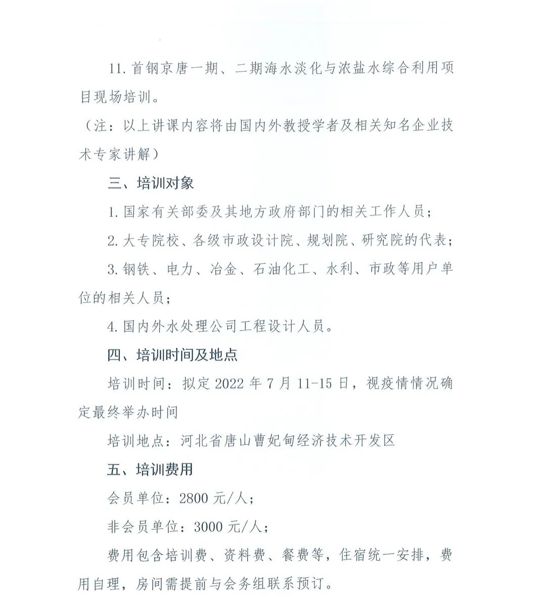11. 首鋼京唐一期、二期海水淡化與濃鹽水綜合利用項(xiàng) 目現(xiàn)場(chǎng)培訓(xùn)。