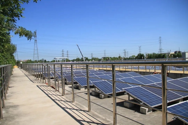 圖為光大水務(wù)天津北塘污水處理廠的光伏發(fā)電設(shè)施