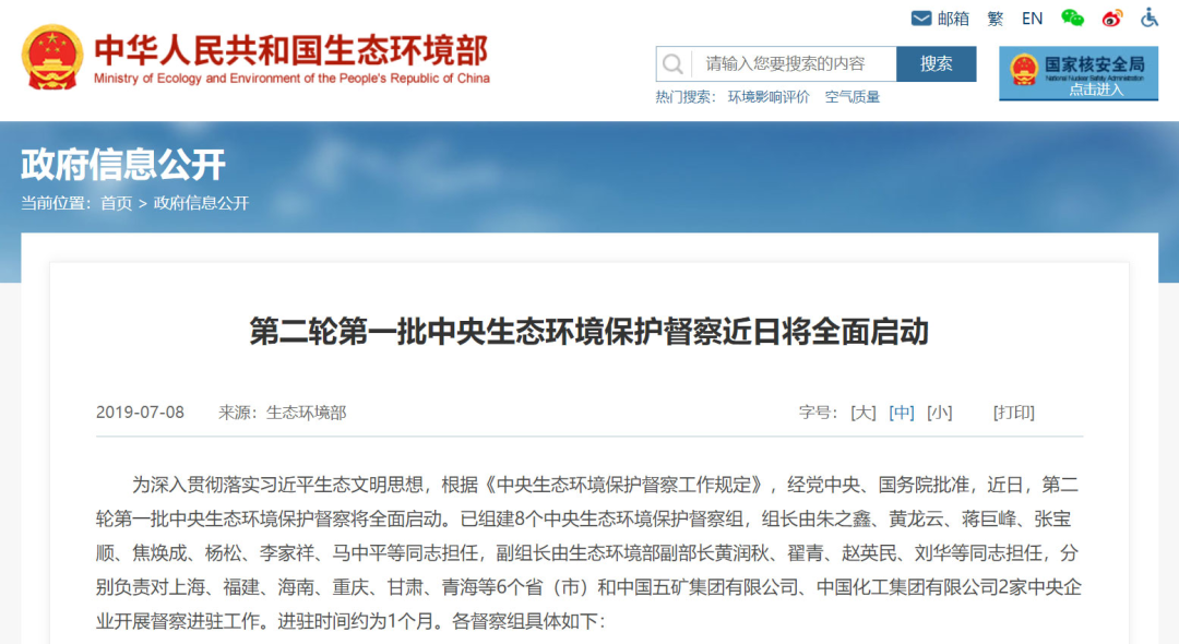 2019年7月,為深入貫徹落實(shí)習(xí)近平生態(tài)文明思想,根據(jù)《中央生態(tài)環(huán)境保護(hù)督察工作規(guī)定》,經(jīng)黨中央、國務(wù)院批準(zhǔn),第二輪第一批中央生態(tài)環(huán)境保護(hù)督察全面啟動。