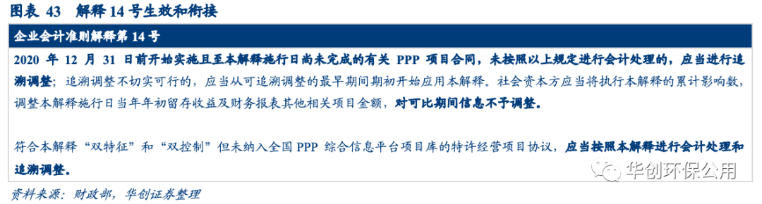 解釋14號要求對部分借款費用予以費用化處理。解釋2號中對價類型(無形資產(chǎn)模式、金融資產(chǎn)模式或混合模式)對借款費用資本化沒有影響而解釋14號明確借款費用的資本化對象是無形資產(chǎn),對價類型是金融資產(chǎn)或者是混合模式下的金融資產(chǎn)部分,相關(guān)的借款費用均應(yīng)予以費用化。我們認為該會計準則的變更是2021年部分環(huán)保上市公司財務(wù)費用上漲的原因之一。