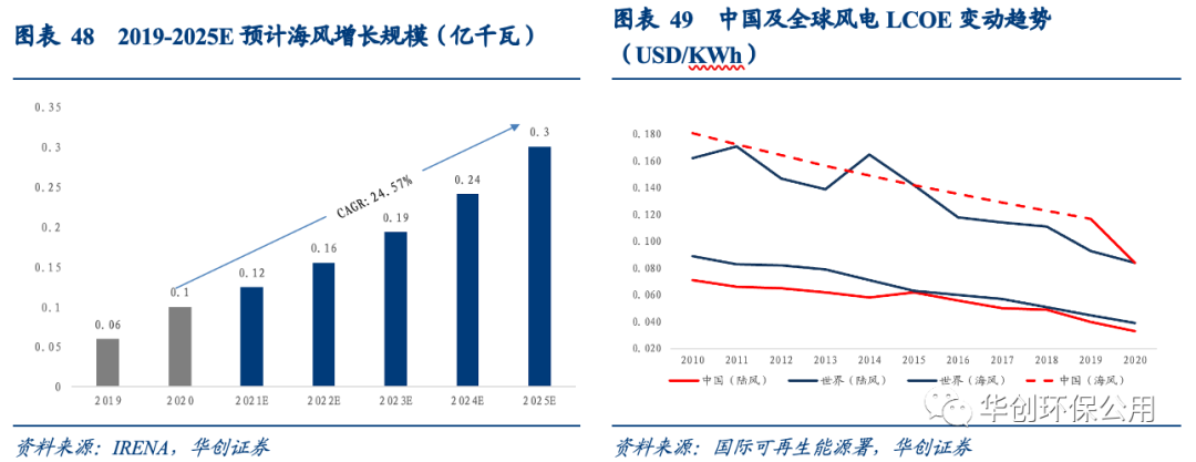 海上風電增長空間巨大,平價節(jié)點或?qū)⒂瓉硌b機潮。海上風電“十四五”期間預(yù)計新增裝機200GW,20-25年CAGR約25%,高于十四五期間風電整體13.5%的增速。隨著海風伙伴計劃首次提出海風將于2024年實現(xiàn)平價,海風或?qū)⒂谄絻r節(jié)點迎來裝機潮,海風未來發(fā)展可期。