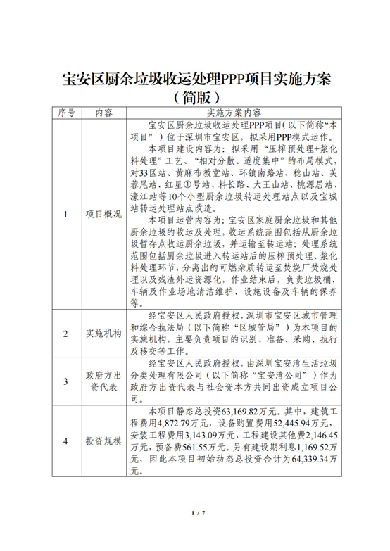據(jù)悉,為構(gòu)建完善的廚余垃圾分類投放、收集、運(yùn)輸、處理體系,推動寶安區(qū)廚余垃圾收運(yùn)處理PPP項(xiàng)目盡快落地,去年8月《寶安區(qū)廚余垃圾收運(yùn)處理PPP項(xiàng)目實(shí)施方案》(征求意見稿)掛網(wǎng)公示,面向社會公開征求意見。