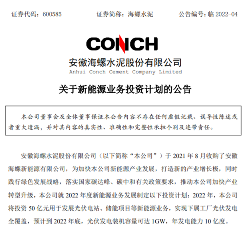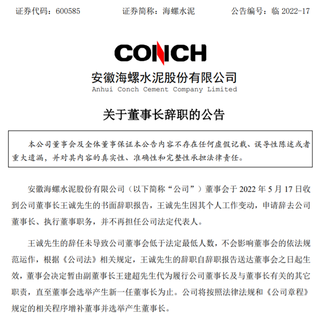 公開資料顯示,王誠出生于1965年3月,安徽淮南人,在擔任安徽省人民政府副秘書長之前,歷任淮南市副市長、市委常委、常務副市長,蚌埠市委副書記、蚌埠市市長,安徽海螺集團黨委書記、董事長等職。2013年,王誠調任蚌埠市委副書記,2016年12月任蚌埠市代市長,2017年2月任蚌埠市市長;2021年4月,王誠任安徽海螺集團有限責任公司黨委書記、董事長,任期為2021年5月28日-2022年5月29日。2022年5月17日,安徽海螺水泥股份有限公司(簡稱:海螺水泥)發(fā)布公告稱,其董事長王誠因個人工作變動原因,辭去公司董事長、執(zhí)行董事職務,并不再擔任法定代表人。董事會決定暫由王建超代為履行公司董事長及與董事長有關的其它職責,直至董事會選舉產生新一任董事長為止。海螺集團作為全世界最大的建材企業(yè)集團之一,王誠在任期即將結束前匆匆離職,便已引起外界猜測, 6月13日安徽紀檢監(jiān)察網公布的“王誠涉嫌嚴重違紀違法”一事,更是引起了熱議。據企查查獲悉,安徽省國資委通過安徽省投資集團控股有限公司持有海螺集團51%股權,為控股股東,港股上市公司中國海創(chuàng)控股(香港)有限公司通過蕪湖海創(chuàng)實業(yè)有限責任公司持有海螺集團49%股權,為參股股東。在上市公司層面,王誠任職期間,海螺水泥作為海螺集團旗下控股子公司,收購了關聯(lián)企業(yè)海螺新能源,加快對光伏儲能項目的投資,又在資本市場頻頻捧場同行定增,甚至直接增持和舉牌,一改此前低調的行事風格。不僅如此,海螺集團旗下港股公司海螺創(chuàng)業(yè)備受資本市場關注。3月30日,海螺創(chuàng)業(yè)分拆海螺環(huán)保在港交所主板上市。5月6日,海螺創(chuàng)業(yè)對外宣布正在考慮分拆旗下安徽海創(chuàng)綠能環(huán)保集團股份有限公司在上交所主板獨立上市。如若成行,屆時海螺集團將擁有5家上市平臺。傳統(tǒng)行業(yè)遇發(fā)展瓶頸,加速布局環(huán)保、新能源領域盡管近年來大動作不斷,但海螺集團仍遭遇了發(fā)展瓶頸,業(yè)績增長基本停滯。高能耗、高排放行業(yè)在“碳達峰、碳中和”的雙碳背景下,面臨極大的轉型壓力。