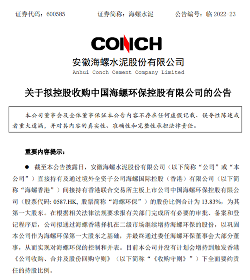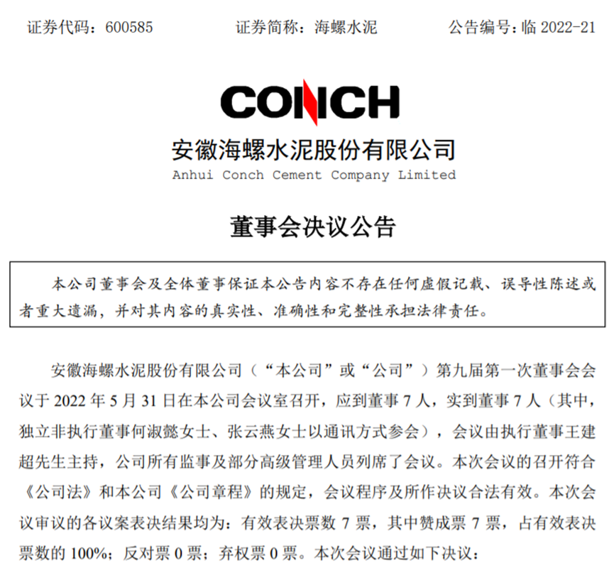 2022年3月9日,海螺水泥發(fā)布公告稱,2022年將投資50億元用于發(fā)展光伏電站、儲能等新能源業(yè)務,實現下屬工廠光伏發(fā)電全覆蓋,預計至2022年底,光伏發(fā)電裝機容量可達1GW,年發(fā)電能力10億度。在環(huán)保領域,6月3日,海螺水泥發(fā)布公告稱,為加強資源整合及產業(yè)融合,海螺水泥擬對海螺環(huán)保進行控股收購,以鞏固海螺水泥作為海螺環(huán)保第一大股東的基礎,并最終通過委任海螺環(huán)保董事會大部分董事,實現對海螺環(huán)保的控制和并表。 截至公告日,海螺水泥直接持有及通過境外海螺香港間接持有股份占海螺環(huán)保總股本比例為13.83%,為第一大股東。自海螺環(huán)保上市破發(fā)后,海螺水泥便頻頻出手進行多筆增持,持股比例不斷上升。海螺環(huán)保近年來的業(yè)績整體來看也非常可觀。2019年至2021年,海螺環(huán)保的營業(yè)收入分別為7.38億元、11.44億元、16.98億元,同比增長分別為85.6%、55.06%、48.44%;歸屬凈利潤分別3.53億元、4.69億元、5.79億元,同比增長分別為51.28%、32.74%、23.37%。海螺環(huán)保作為安徽省環(huán)保領域龍頭企業(yè),海螺水泥收購海螺環(huán)保不僅有利于將傳統(tǒng)水泥窯與廢棄物處置相結合,推動循環(huán)經濟發(fā)展的綠色轉型,而且有助于布局水泥主業(yè)相關的新興產業(yè),打造新的產業(yè)增長極和利潤增長點,具有重要的戰(zhàn)略意義。在王誠辭去海螺水泥董事長、執(zhí)行董事職務后,6月1日,海螺水泥發(fā)布公告稱,根據公司經營管理需要,董事會一致推選王建超先生代為履行公司第九屆董事會董事長及與董事長相關的其它職責,直至董事會選舉產生新一任董事長為止。此外,據海螺集團官網顯示,5月19日,海螺集團五屆一次董事會上,選舉楊軍擔任海螺集團董事長一職。據了解,王誠的繼任者楊軍是此前有色控股的掌舵人,1969年12月出生,正高級經濟師。從履歷來看,2010年7月至2012年9月楊軍任銅陵有色總經理,2012年9月至2014年7月任有色控股黨委副書記、董事、總經理,以及旗下上市公司銅陵有色的黨委書記;2014年7月至2014年8月任有色控股黨委書記、總經理、董事、銅陵有色黨委書記;2014年8月至2015年3月任有色控股董事長、黨委書記、總經理;2015年3月至本次任命之前擔任有色控股董事長、黨委書記,2014年8月至本次任命之前擔任銅陵有色董事長。資料顯示,有色控股和海螺集團是安徽省僅有的入選世界500強的兩家本土企業(yè)。其中,有色控股是安徽省首家銷售收入突破千億元大關的企業(yè),上市公司銅陵有色是中國銅工業(yè)板塊第一股。2021年,銅陵有色和海螺水泥分別實現營收1310.34億元和1679.53億元,在安徽省屬企業(yè)中的地位舉足輕重。新任掌舵人將帶領海螺集團走出怎樣的發(fā)展之路呢?新能源、環(huán)保等布局將怎樣推進?也是行業(yè)目前很關注的話題。