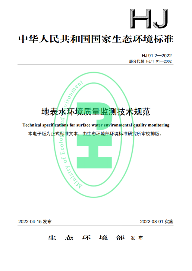 近日,生態(tài)環(huán)境部發(fā)布了《地表水環(huán)境質(zhì)量監(jiān)測技術(shù)規(guī)范(HJ 91.2—2022部分代替 HJ/T 91—2002)》,此標(biāo)準(zhǔn)將于2022年8月1日起實(shí)施。全文如下: