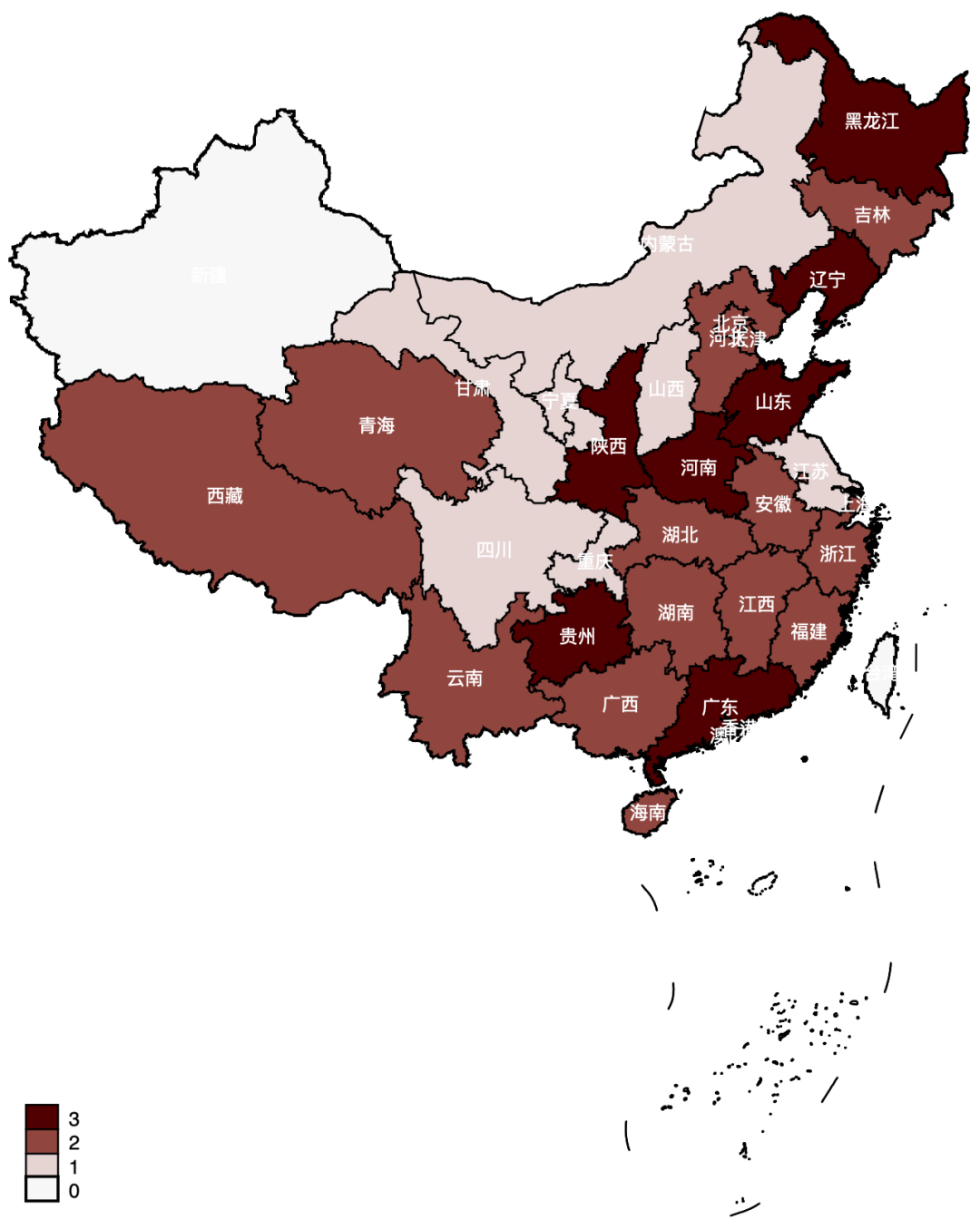 地區(qū)上看,中央環(huán)保督察組進(jìn)駐的31個(gè)省區(qū)市中,除新疆維吾爾自治區(qū)(含新疆生產(chǎn)建設(shè)兵團(tuán))外,其余30個(gè)省區(qū)市均被反饋過(guò)生活垃圾問(wèn)題。其中,河南省、山東省、遼寧省、廣東省、山西省、貴州省和黑龍江省最為突出,在3次中央環(huán)保督察中均被反饋了生活垃圾問(wèn)題,詳見圖2。