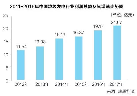 如今,盈利水平狂飆突進的垃圾發(fā)電產(chǎn)業(yè)發(fā)展速度堪與GDP增速匹敵。數(shù)據(jù)顯示,2016年,我國垃圾發(fā)電行業(yè)利潤總額為21.07億元,同比增長9.91%,已然成為我國經(jīng)濟高速發(fā)展的一個縮影。今年9月中旬,短短一周內(nèi),上海環(huán)境、偉明環(huán)保、光大國際簽署的4個生活垃圾焚燒項目完成簽約。據(jù)不完全統(tǒng)計,2016年,垃圾焚燒發(fā)電中標/簽約項目約為147個,是2015年的兩倍。