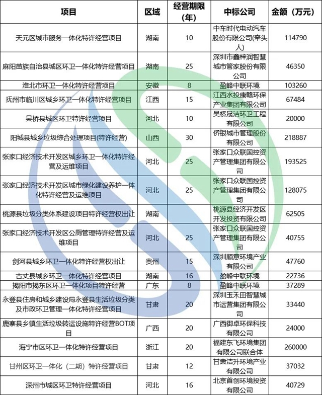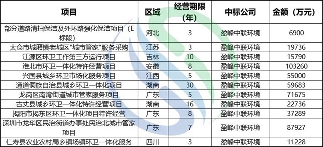 盈峰環(huán)境上半年億級(jí)項(xiàng)目中標(biāo)情況