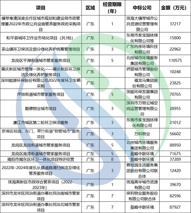 2022年廣東億級(jí)環(huán)衛(wèi)項(xiàng)目市場(chǎng)情況