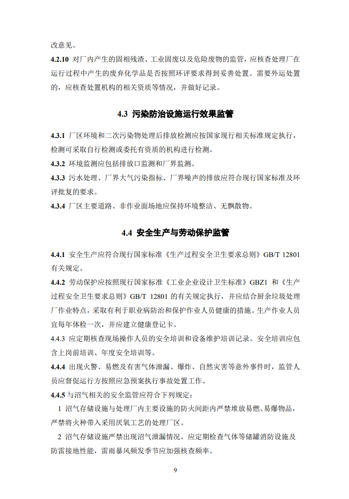 其中,主處理采用厭氧消化工藝時(shí),應(yīng)對(duì)厭氧消化系統(tǒng)、沼氣凈化及存儲(chǔ)設(shè)施的運(yùn)行進(jìn)行監(jiān)管,并符合下列規(guī)定:
