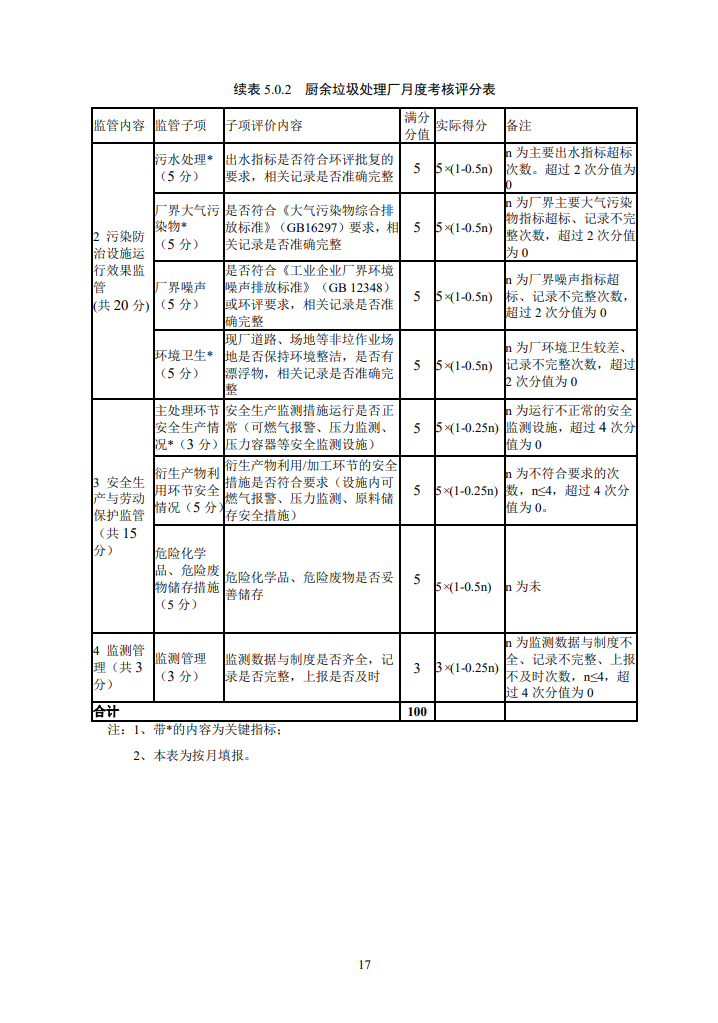 標(biāo)準(zhǔn)指出,監(jiān)管人員應(yīng)每月對(duì)處理廠的運(yùn)行進(jìn)行一次月考核,月考核結(jié)果可作為該月垃圾處理補(bǔ)貼費(fèi)撥付的參考依據(jù)。