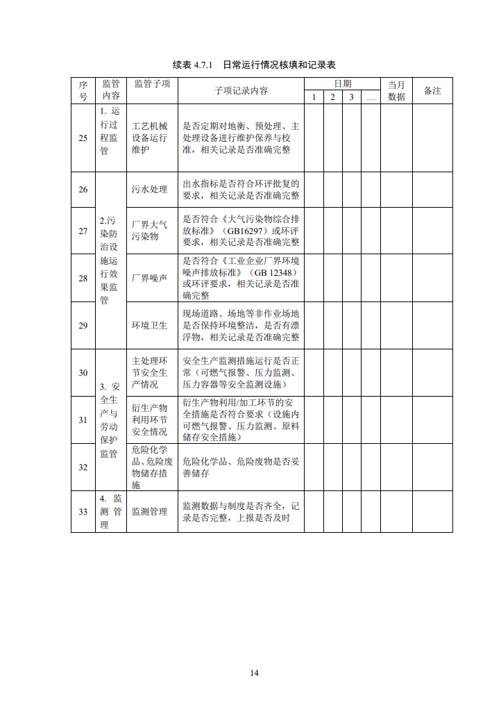 標(biāo)準(zhǔn)指出,處理廠的監(jiān)管內(nèi)容應(yīng)包括處理廠生產(chǎn)運(yùn)行全過(guò)程、污染防治設(shè)施運(yùn)行效果、安全生產(chǎn)與勞動(dòng)保護(hù)、監(jiān)測(cè)管理、資料管理等。尤其對(duì)下列情況應(yīng)實(shí)施重點(diǎn)監(jiān)管: