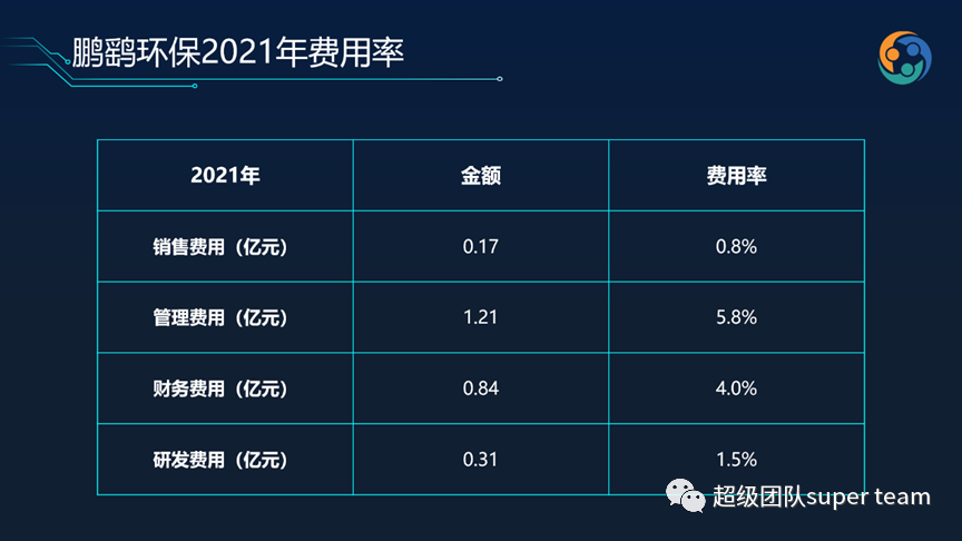 水務(wù)上市公司財務(wù)費用率2021年均值為6%,鵬鷂環(huán)保為4%,與平均值比戰(zhàn)績不錯。