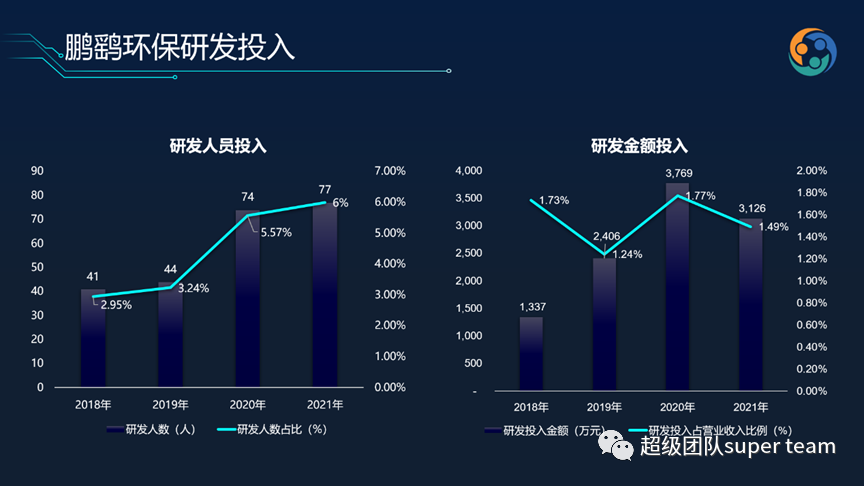 相比2019年,近兩年鵬鷂環(huán)保的研發(fā)費用率有所攀升,2021年的研發(fā)投入為3100萬,研發(fā)費用率約為1.5%。