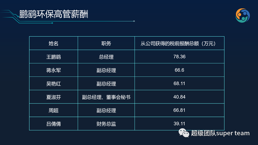 鵬鷂環(huán)保一直強調(diào)的是以人為本, 從鵬鷂環(huán)保的高管薪酬來看,如果鵬鷂把自己定義為一個區(qū)域型企業(yè),鵬鷂的高管薪酬絕對不算低,絕對給出了對高管人才的重視。而且這僅為上市公司公開數(shù)據(jù)。