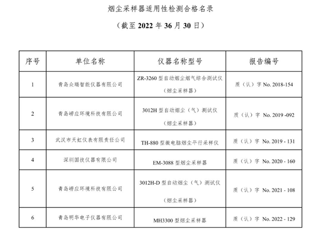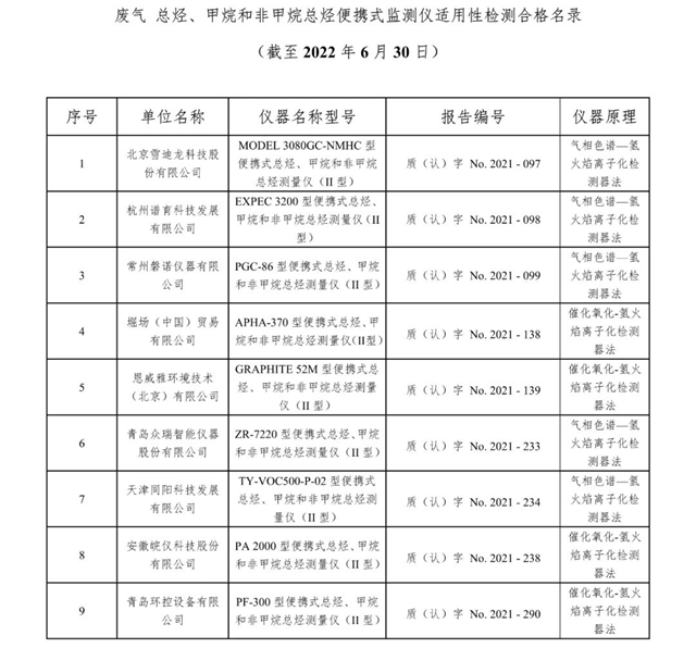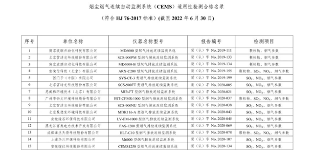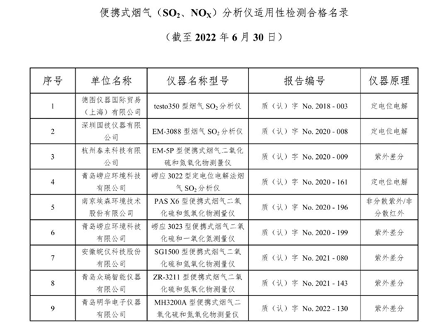 原標題:總站報告 | 廢氣類適用性檢測合格名錄(截至2022年6月30日)