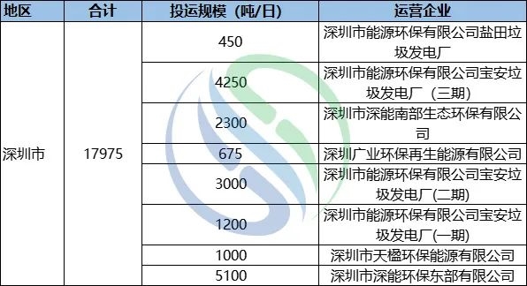 深圳垃圾焚燒投運(yùn)情況