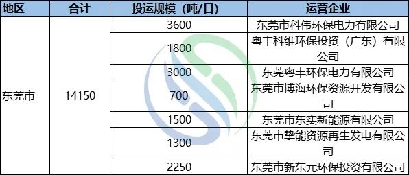東莞垃圾焚燒投運(yùn)情況