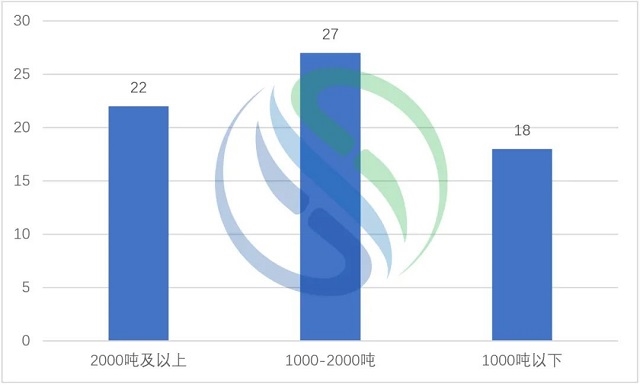 廣東垃圾焚燒項(xiàng)目日處理規(guī)模區(qū)間分布