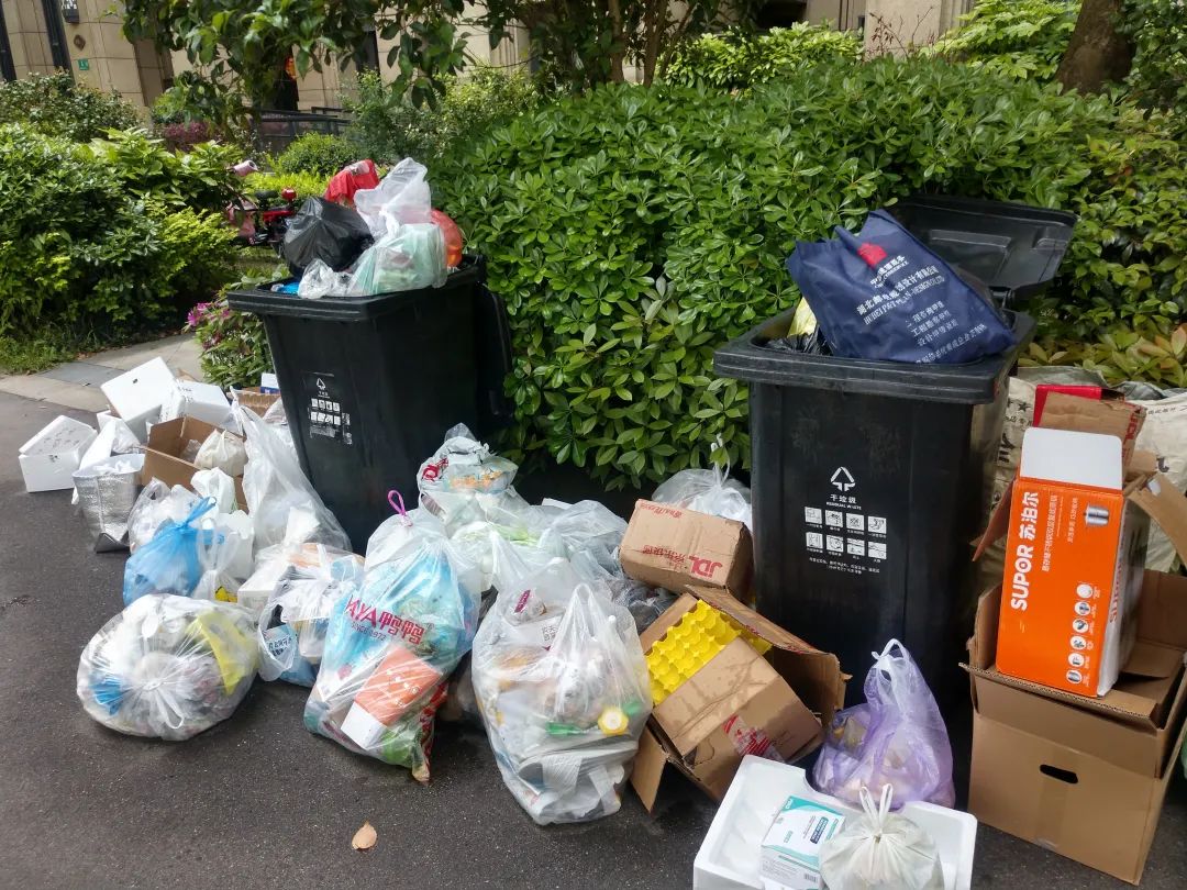疫情期間小區(qū)垃圾分類最困難的時刻的情形,但依然比較干凈
