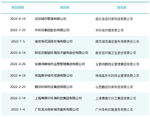 作為玉禾田[300815]最主要的環(huán)衛(wèi)項目投標(biāo)主體,玉禾田物業(yè)清潔公司在名稱上用“智慧城市運營”替換“物業(yè)清潔”,則是希望轉(zhuǎn)型邁向智慧城市運營商之路。司南君在對近八年的更名規(guī)律進(jìn)行總結(jié)與梳理發(fā)現(xiàn),環(huán)衛(wèi)企業(yè)“更名潮”大概可以分為三個階段。第一波更名潮從2015-2018年。第一波更名潮追求專業(yè)化發(fā)展道路,這個時期的更名熱詞是“環(huán)境服務(wù)”、“環(huán)境科技”、”環(huán)保產(chǎn)業(yè)“、“環(huán)保技術(shù)”,一大批清潔公司、保潔公司、環(huán)衛(wèi)公司、物業(yè)公司更名為“環(huán)境服務(wù)公司”、“環(huán)境科技公司”、”環(huán)保技術(shù)公司“。第二波更名潮從2019年到2021年。第二波更名潮集體轉(zhuǎn)向城市綜合服務(wù)方向。這一時期的更名熱點是“城市管理”、“城市服務(wù)”、“城市管家”、“智慧城市運營”、“公共事業(yè)管理”等,用這些熱詞替代“環(huán)保技術(shù)”、“環(huán)衛(wèi)服務(wù)”、“環(huán)境科技”、“環(huán)境服務(wù)”等傳統(tǒng)環(huán)衛(wèi)詞匯。進(jìn)入2022年度,環(huán)衛(wèi)企業(yè)迎來第三波更名潮。今后一定時期,環(huán)衛(wèi)行業(yè)的發(fā)展將面臨多重挑戰(zhàn),環(huán)衛(wèi)企業(yè)更名也將更富多元化,因此企業(yè)更名也必將根據(jù)每家公司對行業(yè)發(fā)展的理解認(rèn)識及自身戰(zhàn)略定位而各有側(cè)重。2015年到2018年是環(huán)衛(wèi)市場化第一波大發(fā)展時期。圖表1:2018年度更名“百強(qiáng)企業(yè)”這期間,環(huán)衛(wèi)市場化大閘初步敞開,PPP模式引入環(huán)衛(wèi)領(lǐng)域,城鄉(xiāng)環(huán)衛(wèi)一體化模式如火如荼,年化額超千萬元、合同額超億元的環(huán)衛(wèi)大標(biāo)開始批量出現(xiàn),傳統(tǒng)物業(yè)清潔企業(yè)、非環(huán)衛(wèi)類物業(yè)公司大量涌入環(huán)衛(wèi)行業(yè)。圖表2:2017年度更名“百強(qiáng)企業(yè)”因此,環(huán)衛(wèi)企業(yè)第一波更名潮追求專業(yè)化發(fā)展道路,這個時期的更名熱詞是“環(huán)境服務(wù)”、“環(huán)境科技”、”環(huán)保產(chǎn)業(yè)“、“環(huán)保技術(shù)”,一大批清潔公司、保潔公司、環(huán)衛(wèi)公司、物業(yè)公司更名為“環(huán)境服務(wù)公司”、“環(huán)境科技公司”、”環(huán)保技術(shù)公司“。圖表3:2016年度更名“百強(qiáng)企業(yè)”圖表4:2015年度更名“百強(qiáng)企業(yè)”這期間有近40家百強(qiáng)企業(yè)或日后發(fā)展成百強(qiáng)企業(yè)的環(huán)衛(wèi)公司完成了更名,如福建東飛環(huán)境集團(tuán)有限公司、濱南生態(tài)環(huán)境集團(tuán)股份有限公司、北京慧豐清軒環(huán)境科技集團(tuán)有限公司、河北人和環(huán)境科技有限公司、浙江波普環(huán)境服務(wù)有限公司、深圳市陽光三環(huán)生態(tài)環(huán)境股份有限公司、深圳世路源環(huán)境有限公司(深兄環(huán)境)、廣東美保環(huán)境技術(shù)有限公司、泓欣環(huán)境集團(tuán)有限公司等。第二波:從“環(huán)衛(wèi)服務(wù)”到“城市管家”2019年到2021年是“環(huán)衛(wèi)市場化”高潮向“城市大管家模式”的轉(zhuǎn)型期初期。圖表5:2021年度更名“百強(qiáng)企業(yè)”這期間,環(huán)衛(wèi)市場化從大發(fā)展走向大高潮,城市精細(xì)化管理從“理念”走向“實踐”,各路國有物業(yè)公司積極推動城市大管家模式,大批頭部物管企業(yè)通過大并購等方式搶灘環(huán)衛(wèi)及城市服務(wù)市場。圖表6:2020年度更名“百強(qiáng)企業(yè)”由此,順應(yīng)時代大潮,環(huán)衛(wèi)企業(yè)第二波更名潮集體轉(zhuǎn)向城市綜合服務(wù)方向。這一時期的更名熱點是“城市管理”、“城市服務(wù)”、“城市管家”、“智慧城市運營”、“公共事業(yè)管理”等,用這些熱詞替代“環(huán)保技術(shù)”、“環(huán)衛(wèi)服務(wù)”、“環(huán)境科技”、“環(huán)境服務(wù)”等傳統(tǒng)環(huán)衛(wèi)詞匯。圖表7:2019年度更名“百強(qiáng)企業(yè)”這期間有40余家知名環(huán)衛(wèi)企業(yè)完成了更名,如僑銀城市管理股份有限公司、北控城市環(huán)境服務(wù)集團(tuán)有限公司、深圳玉禾田智慧城市運營集團(tuán)有限公司、深圳市鑫梓潤智慧城市管家股份有限公司、康潔科技集團(tuán)有限公司、西安高科城市服務(wù)管理有限責(zé)任公司、溫州市鹿城區(qū)城市管理服務(wù)有限公司、廣東路通公用事業(yè)管理集團(tuán)有限公司、深圳市金陽盛城市服務(wù)集團(tuán)有限公司。第三波:多重挑戰(zhàn)并存轉(zhuǎn)型期進(jìn)入2022年度,環(huán)衛(wèi)企業(yè)迎來第三波更名潮。這一時期也將是城市管家模式完成第一輪測試后的大發(fā)展時期。圖表8:2022年度更名“百強(qiáng)企業(yè)”(截止2022年8月份)今后一定時期,環(huán)衛(wèi)行業(yè)的發(fā)展將面臨多重挑戰(zhàn):(一)以電動環(huán)衛(wèi)車、氫能環(huán)衛(wèi)車等為代表的“新能源化”;(二)以智慧環(huán)衛(wèi)與無人操作環(huán)衛(wèi)裝備為代表的“智能化”;(三)以城市大管家為代表的城市管理“精細(xì)化”;(四)以智慧市政、智慧城市為代表的“平臺化”;(