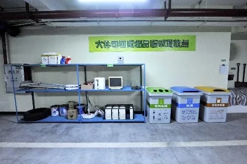 廣州一棟住宅樓地下車庫(kù)里的大件可回收物品臨時(shí)堆放點(diǎn)