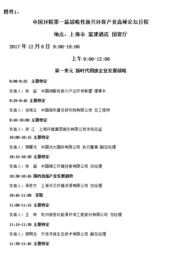 中國環(huán)聯(lián)第一屆(2017)戰(zhàn)略性新興環(huán)保產(chǎn)業(yè)高峰論壇