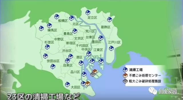 可燃垃圾會被垃圾車運送到處理工廠進行處理,上圖就是整個東京都的清掃工廠的分布圖。
