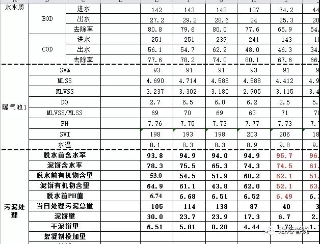 污泥相關數(shù)據(jù)有:每日剩余污泥排放量,每日脫水機污泥投配泵提升量,脫水后泥餅量,外運泥餅車數(shù);污泥絮凝劑加藥配比,脫水前污泥含水率,脫水后污泥含水率,污泥有機成分,脫水后上清液SS等等。污泥脫水的過程是保障污水處理正常運行的一個環(huán)節(jié),通過每日的數(shù)據(jù)記錄,對污泥脫水能夠?qū)崿F(xiàn)每日追蹤,對污水處理的問題發(fā)現(xiàn)和解決是重要的參考數(shù)據(jù)。