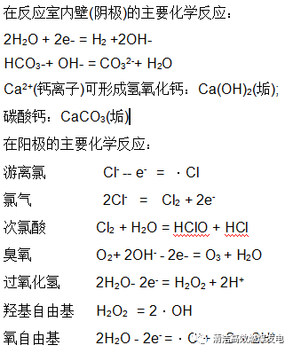 電化學(xué)每個(gè)單元是由帶電極的反應(yīng)室、進(jìn)出水管、排污閥門、電源控制柜和維修輔助設(shè)備等幾部分組成。通過直流電流的作用,在反應(yīng)室內(nèi)壁(陰極)附近形成一個(gè)堿性環(huán)境(pH值達(dá)到12-13的范圍),這種強(qiáng)堿性環(huán)境下結(jié)垢物質(zhì)更容易結(jié)晶析出。在陽極附近,高達(dá)50%的氯離子轉(zhuǎn)變成游離氯或次氯酸,同時(shí)還生成羥基自由基、氧自由基、臭氧和雙氧水。這些物質(zhì)進(jìn)一步強(qiáng)化了在反應(yīng)室內(nèi)的殺菌、滅藻效果,并且不允許包括軍團(tuán)菌等菌類及微生物的存活;碳酸鈣飽和指數(shù)LSI控制軟件可以確保凝汽器不結(jié)垢、不腐蝕,確保熱交換器熱交換效率高,并且不需要清洗,從而達(dá)到提高生產(chǎn)效率的目的;整個(gè)電化學(xué)過程都是利用水體本源物質(zhì),不產(chǎn)生污染,屬于綠色環(huán)保型的水處理方法。