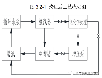 2016年10月底進(jìn)行電化學(xué)處理改造,2016年11月24日開始投入運(yùn)行。改造工藝流程如下圖所示: