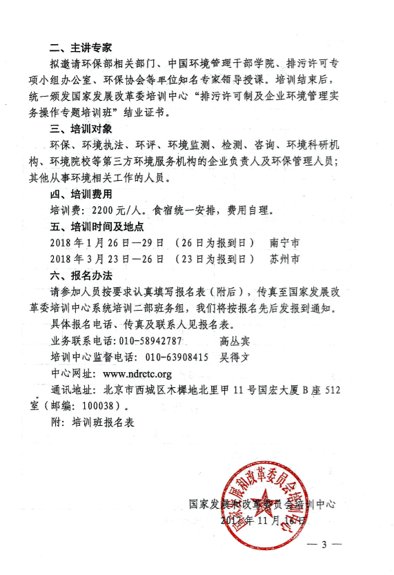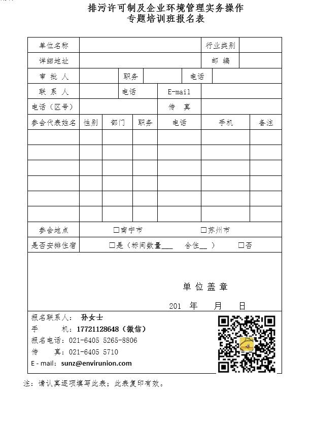 附件:關于舉辦排污許可制及企業(yè)環(huán)境管理實務操作專題培訓班報名表