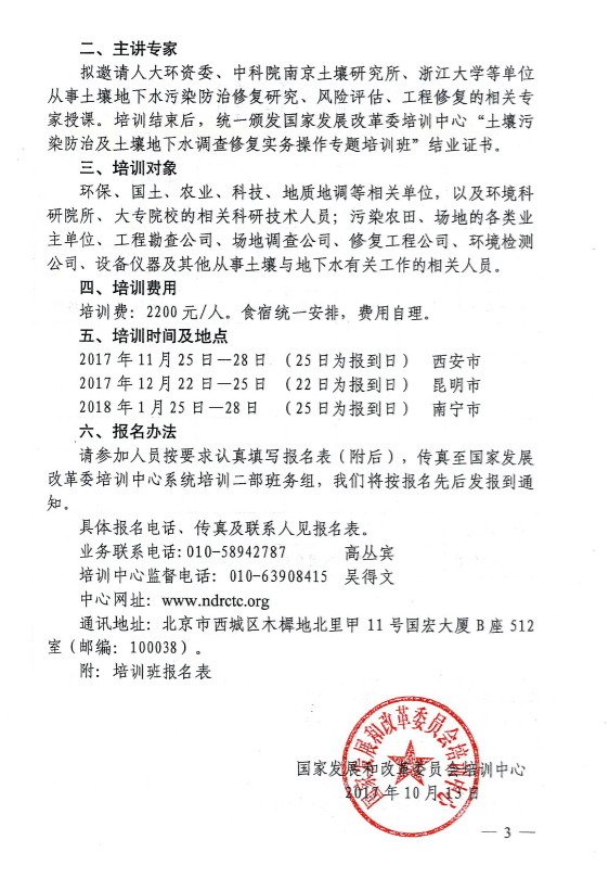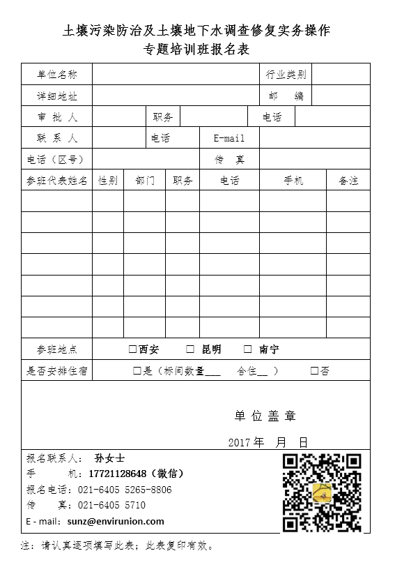 附件:土壤污染防治及土壤地下水調(diào)查修復實務操作專題培訓班報名表