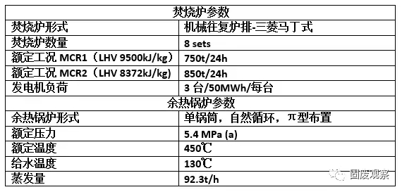 項目一期工程由3x150t/d的逆向推飼馬丁式垃圾焚燒設備為核心組成三條垃圾焚燒處理生產線,配置7.5MW凝氣式汽輪發(fā)電機組。煙氣處理采用了循環(huán)流化反應+活性炭噴射+布袋除塵+尾氣在線監(jiān)測的半干式循環(huán)流化煙氣處理裝置。