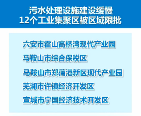 根據《安徽省水污染防治工作方案》要求和《安徽省環(huán)境保護區(qū)域限批管理辦法》規(guī)定,安徽省環(huán)保廳決定,自12月6日起,省、市、縣(區(qū))環(huán)保部門暫停審批這12個工業(yè)集聚區(qū)新增水污染排放建設項目環(huán)評文件,民生工程、節(jié)能減排、生態(tài)環(huán)境保護和基礎設施建設除外。區(qū)域限批,意味著集聚區(qū)內計劃中的涉水項目被叫“暫?!?。
