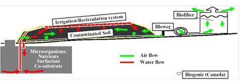 石油廢棄物生物堆制工藝(包括噴淋與循環(huán)系統(tǒng)、廢氣處理系統(tǒng)等)