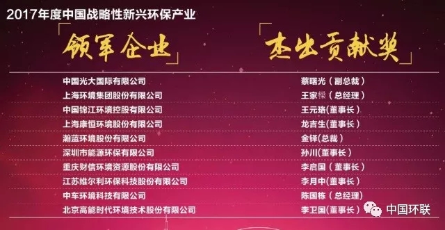 2017年度中國戰(zhàn)略性新興環(huán)保產(chǎn)業(yè)領(lǐng)軍企業(yè)與杰出貢獻(xiàn)獎