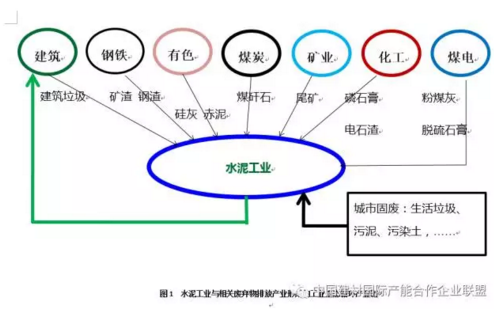水泥工業(yè)綜合利用工業(yè)固體廢物的歷史悠久。有多少工業(yè)產(chǎn)業(yè)的固廢要依賴水泥工業(yè)和水泥制品產(chǎn)業(yè)安全處置和資源化綜合利用呢?實在太多,筆者無法作全面統(tǒng)計,尤其是各種工業(yè)過程產(chǎn)生的危險廢棄物,但是圖1中所列出的相關(guān)產(chǎn)業(yè)已足夠令人有一個大觀。據(jù)2010年的數(shù)據(jù),水泥工業(yè)固廢利用已占全國固廢利用量的30%左右。一些業(yè)內(nèi)外人士認為水泥工業(yè)利廢是理所當然,其實不然。水泥生產(chǎn)利用可燃廢物,最初是因為國家能源短缺時降低水泥產(chǎn)品生產(chǎn)能耗的需要。水泥熟料生產(chǎn)有著嚴格的生料化學組分設計、成分波動范圍和熟料產(chǎn)品質(zhì)量控制要求,從系統(tǒng)穩(wěn)定生產(chǎn)和質(zhì)量控制上來說,組分變化或波動較大、所含微量元素不同和濃度高低、廢物性能差異較大的各種工業(yè)固廢的利用,均會對水泥生產(chǎn)過程和產(chǎn)品質(zhì)量帶來影響,需要通過研發(fā),采取相應的技術(shù)措施加以協(xié)同和消除影響??梢哉f,每一種廢棄物的利用都必須研發(fā)相應的控制技術(shù),水泥工業(yè)的環(huán)保功能是建立在科技創(chuàng)新的基礎之上。