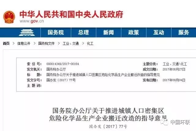 9月4日國(guó)務(wù)院辦公廳印發(fā)了《關(guān)于推進(jìn)城鎮(zhèn)人口密集區(qū)危險(xiǎn)化學(xué)品生產(chǎn)企業(yè)搬遷改造的指導(dǎo)意見(jiàn)》,《指導(dǎo)意見(jiàn)》明確提出了?;菲髽I(yè)搬遷改造目標(biāo):到2025年,城鎮(zhèn)人口密集區(qū)現(xiàn)有不符合安全和衛(wèi)生防護(hù)距離要求的?;菲髽I(yè)就地改造達(dá)標(biāo)或搬遷進(jìn)入規(guī)范化工園區(qū)或關(guān)閉退出,企業(yè)安全和環(huán)境風(fēng)險(xiǎn)大幅降低。其中:中小型企業(yè)和存在重大風(fēng)險(xiǎn)隱患的大型企業(yè)2018年前全部啟動(dòng)搬遷改造,2020年底前完成;其他大型企業(yè)和特大型企業(yè)2020年前全部啟動(dòng)搬遷改造,2025年底前完成。