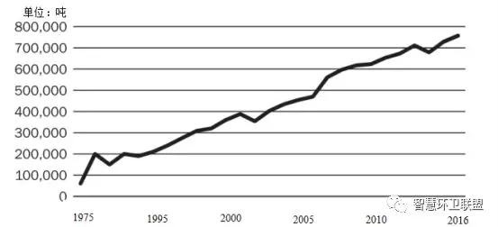 圖13. 瑞典1975~2016年期間的生活垃圾生物處置量
